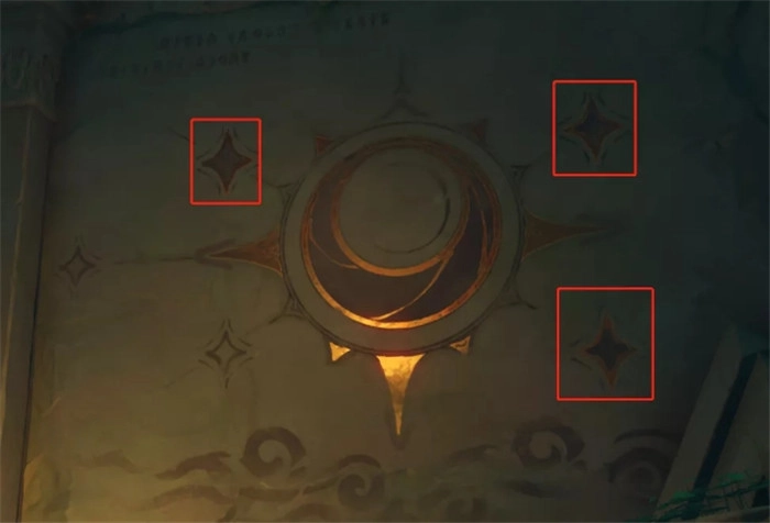 壁画上有几个菱形图案,按照壁画上带阴影的菱形图案的顺序点亮下方火把,就能得到一个宝箱。