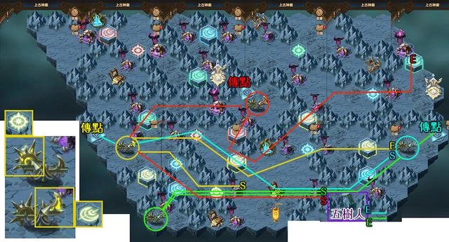 剩下的是根据线路一起推过去便可,踩完图上的符文之后变成这条达到关底BOSS的路。