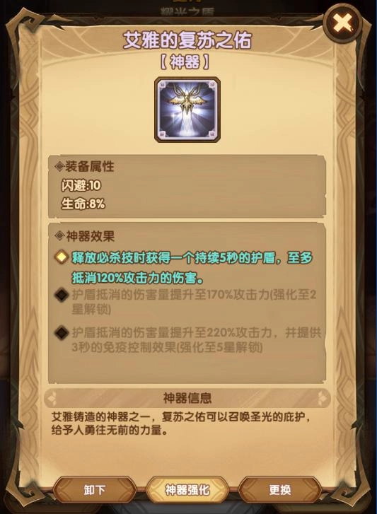 通过关卡之后给到首先装备艾雅的苏醒之佑。
