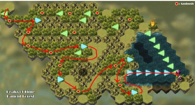 血荆森林这一个副本必须留意的点是妖怪是触发式呈现的,是上图中的小红点。