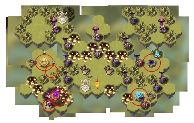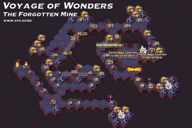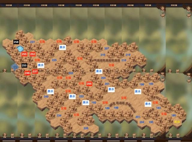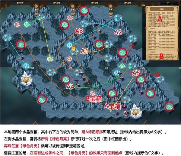第3个副本森林秘境要根据图上的大数字次序来推图否则有可能致使右侧的箱子被波折封住。