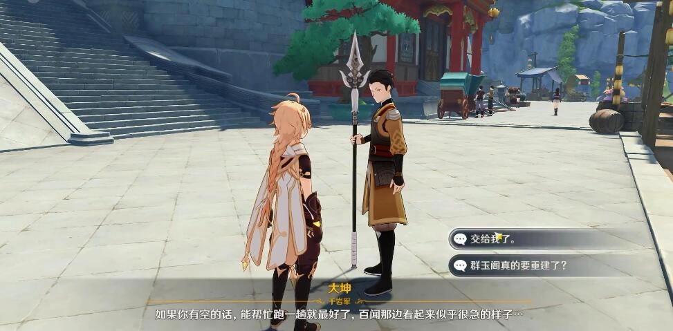成功领取任务后,玩家即可开启任务流程。此时需要找到名为千岩军大坤的NPC,他正在璃月港口一带巡查,具体位置大致在璃月港北侧区域。该区域设有传送点,可直达目标港口位置,千岩军大坤就在传送点附近,找到他即可触发后续任务。