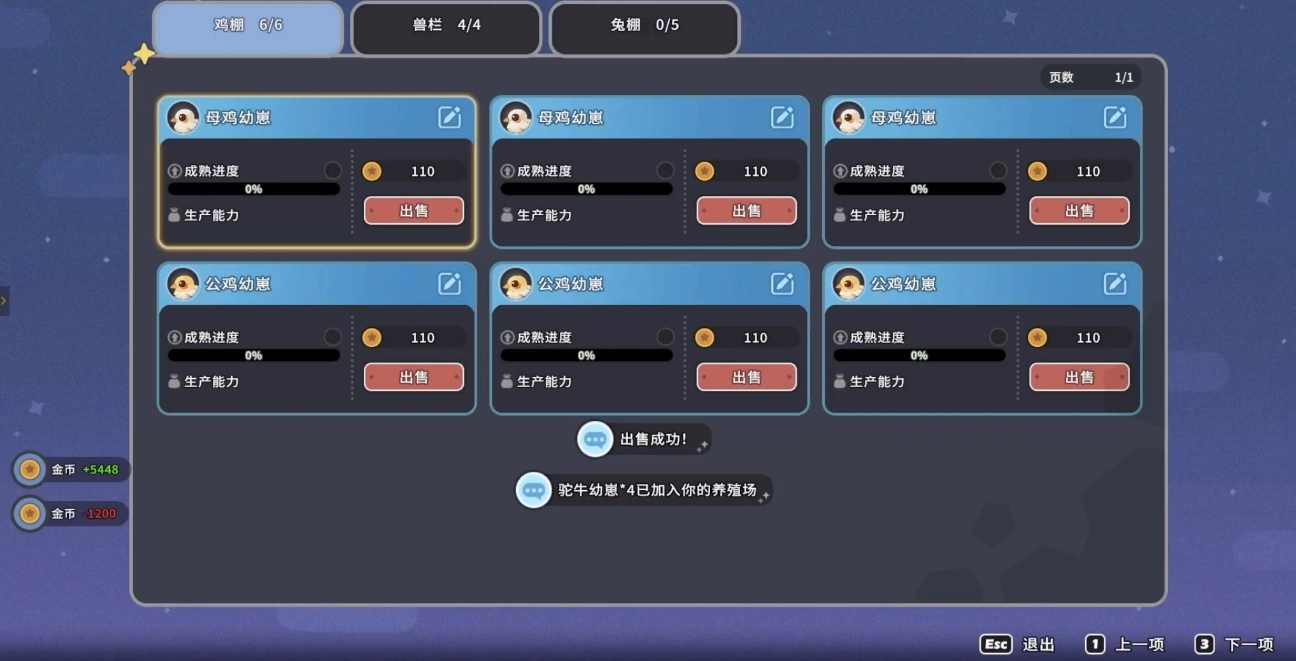 不过要是玩家决定把养大的鸡卖掉,那得到的收益就相当不错了。要知道成熟的公鸡在流浪商店能卖1000到1100,母鸡的售价范围在900至1000上下,所以单靠卖鸡带来的收益还是挺可观的。而且这样的话,羽毛和鸡蛋就成了卖鸡过程中的副产品,还能给玩家额外增加一笔收入。