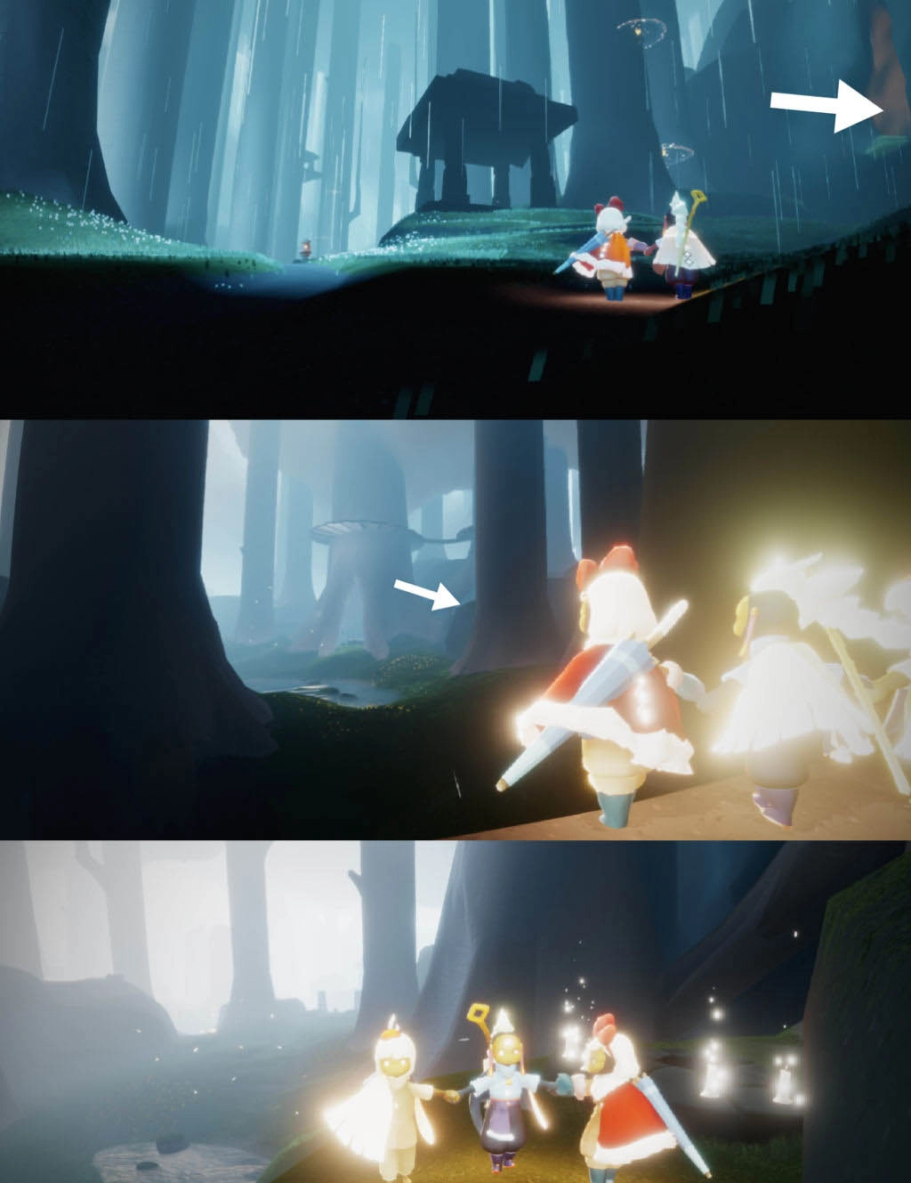 其中,荧光森林这个地点就在雨林图三,来到其路中间的小亭子内就能找到它;至于秘密花园,同样在图三,但它位于右边的隐藏图上,要是实在找不到,可以按照下图所指的方向去寻找哦。