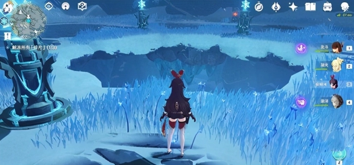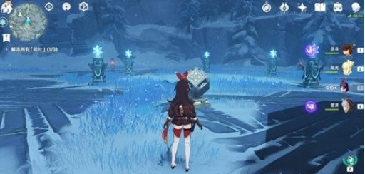 2、抵达遗址后,开关上方会有一个仙灵,按下开关后,玩家按照仙灵提示的顺序点亮冰柱就能启动装置。