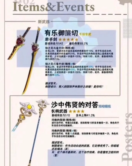 在装备更新上,新版本带来了两把背景故事饱满的全新兵器:其一为有乐御簾切,这是一把5星单手武器,并且是专门为新角色千织量身打造的;其二是沙中伟贤的对答,作为一把4星长柄新兵器,它相当良心,玩家参与活动就能免费获取,其90级状态下的主属性是510点基础攻击力,副属性则为41.3%的HP上限加成。根据此前的前瞻爆料,新版本计划于3月13日正式开启,持续时间大概一个月。在这段时间里,玩家可以好好利用新增内容,一路畅玩到底!