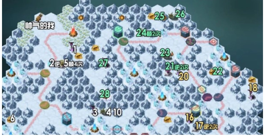 玩家们可依照图中路线推进关卡,前期数字关卡难度相对较低,越往后难度递增。切勿随意乱走,否则极易遭遇高级怪物导致全队覆灭。建议遵循小编给出的路线前进,由于前面的路径上分布着不少增益道具可供收集,这能提升后续通关的成功率。