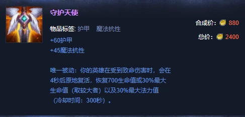 阿狸的第五件装备可以选择复活甲,到了后期敌人的伤害都提升上来了,阿狸很容易被秒杀,出了复活甲之后,阿狸就能更自在地在敌人后排穿梭,即便被秒也能复活继续战斗。