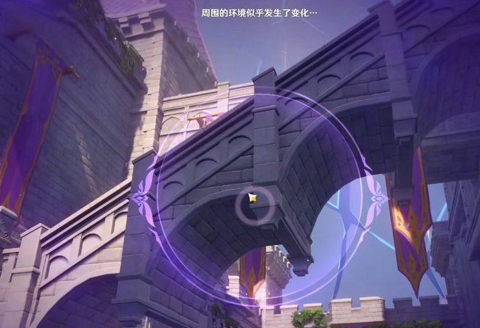 沿着指定路线往前走,你会看到几座断桥横在眼前,这些断桥会挡住玩家继续前进的路。要是想继续深入,就得先把这些断桥修复好。在断桥旁边,你们能找到一个叫“夜鸦凝视”的紫色阵台。