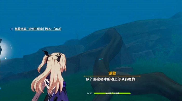 供奉栖木时,玩家需依据小地图的指引,先找到三根羽毛,再带着它们前往祭场的三处完成供奉。首先触碰第一处栖木,随后去寻找三个羽毛——羽毛是会移动的,第一个在丘丘人的屋顶上,继续往前走一段就能看到第二个,第三个则可以直接拾取。收集齐三根羽毛后进行对话,第一处栖木的供奉便完成了。