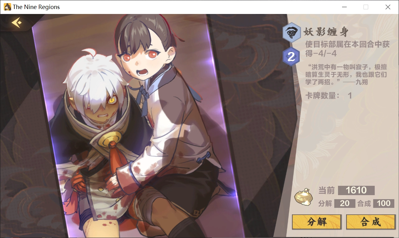 妖影缠身:卡牌强度不错,虽然本身二费卡,但是可以用来打四费卡。