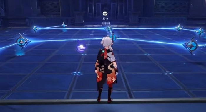 这时各位会出现在主世界,紧接着地图上会出现一个黄色区域,你们需要前往这个区域。抵达后,地面上会有一个调查点,点击它就能获得一张星图。拿到星图后,再次进入宫殿,然后用刚得到的星图打开第二个尘封通道并进入。进入通道后,会遇到一个恒星机关,按照之前的方法就能快速通过。所有人通过后,会像之前一样再获得一张星图。拿到这张星图后,跟着光灵一起飞行,飞到主世界后你们会发现找不到目标区域——其实是因为大家现在处于水面世界,而目标区域在水面世界的下方。你们直接前往主世界,然后一直往前走,就能看到脚下有一个水盘。