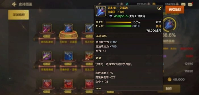 阿修罗的另一把毕业武器便是广为人知的无影剑,这是一把50级的深渊史诗短剑,攻击时能附加30%的伤害。尽管它的伤害比不上团本武器,但两者差距并不算悬殊。作为与阿修罗最为契合的武器,各位玩家可以通过挑战深渊副本的方式来获取它。