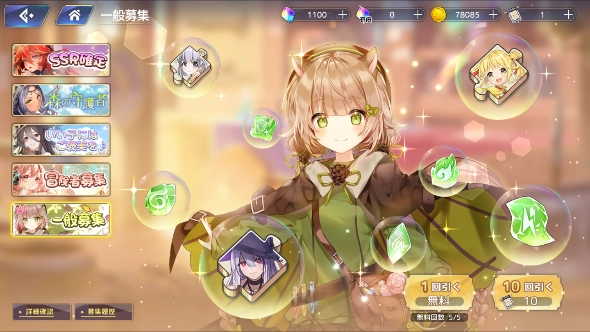 游戏内设有两种固定性质的卡池,即“一般招募”与“冒险者招募”。活动卡池会依据当前开展的活动做出调整,每次推出的活动卡池数量并不固定。由于活动类型以及卡池种类存在差异,进行召唤时所需消耗的道具也各不相同。