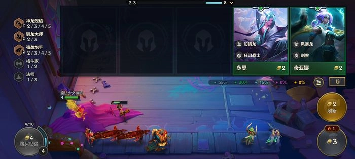 另外提醒大家,游戏前期记得提升人口。因为当前版本有神龙环境,装备成型会更容易,所以对装备的依赖没那么高,这就使得前期连败的收益有所降低。要是后面被对手击败,血量会很难稳住。