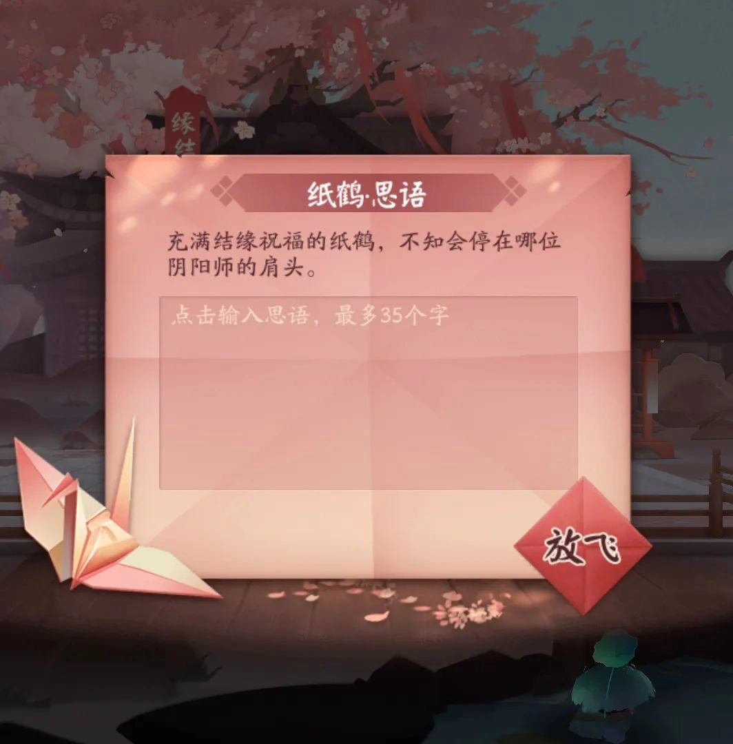 阴阳师们可在进入缘结之境前,通过放飞纸鹤尝试找寻自己的缘分。