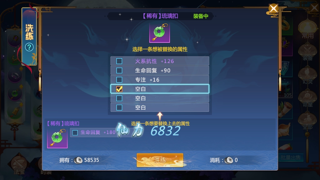 其他部位的属性选择同样丰富多样,总体而言,优先考虑属性加成类的,像灵力提升、暴击伤害这类;防御类的则优先选气血,其次是气血回复、闪避等。