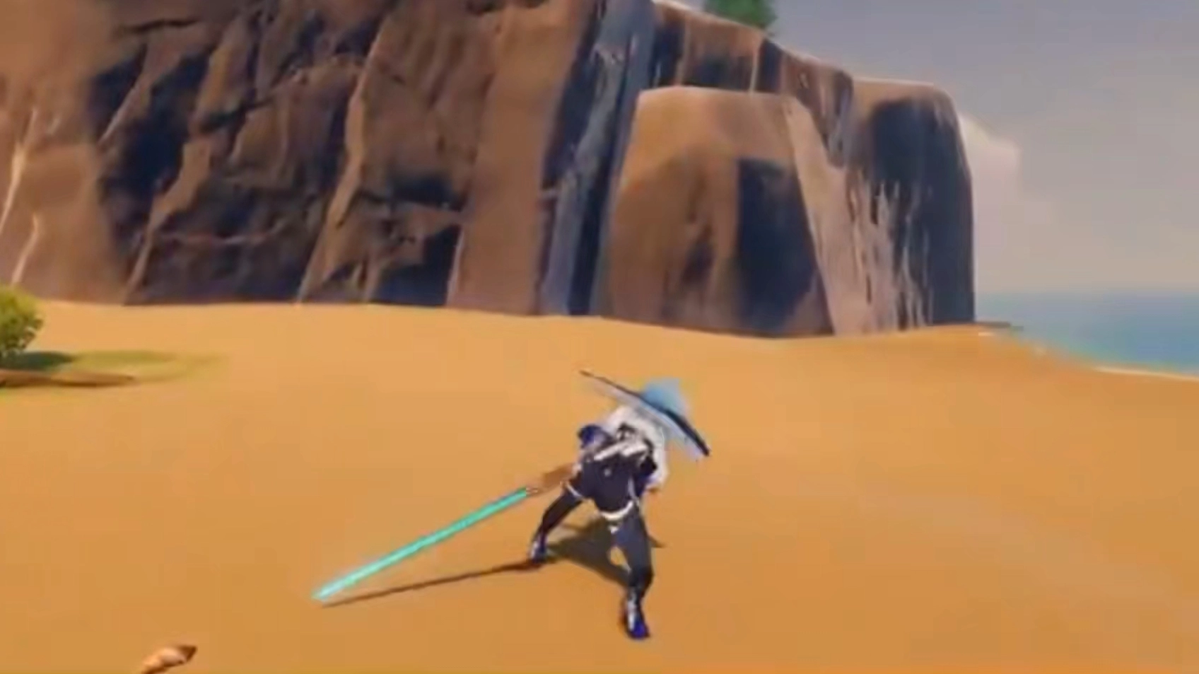 尤拉的重击技能是用剑对前方进行大范围的远距离扫击,覆盖面积相当大,属于中型AOE技能。若命中带有印记的敌人,会移除其印记并造成额外伤害。大招则是将手中的魔法箭放大数倍后猛砸地面,瞬间对敌人造成巨额伤害并将其击倒。这把光剑的被动效果是:当尤拉被击倒时,光剑会自动现身护主,攻击敌人。
