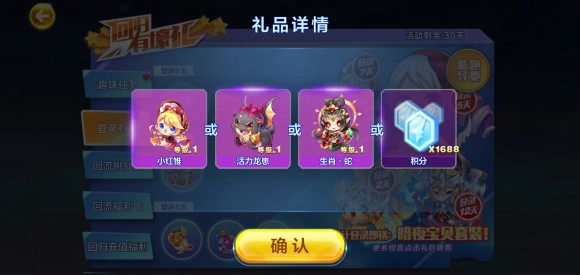 首先最关键的是角色坐骑大礼包,回归初期的几天里,我们能领到限时阵容,这套阵容在当前版本强度不俗,对刚回归的过渡期而言适配性很高,正好解决了过渡期的需求。另外,只要每天按时登录,还能领取登录奖励这类丰厚福利,不仅福利给力,也不用花费钻石。