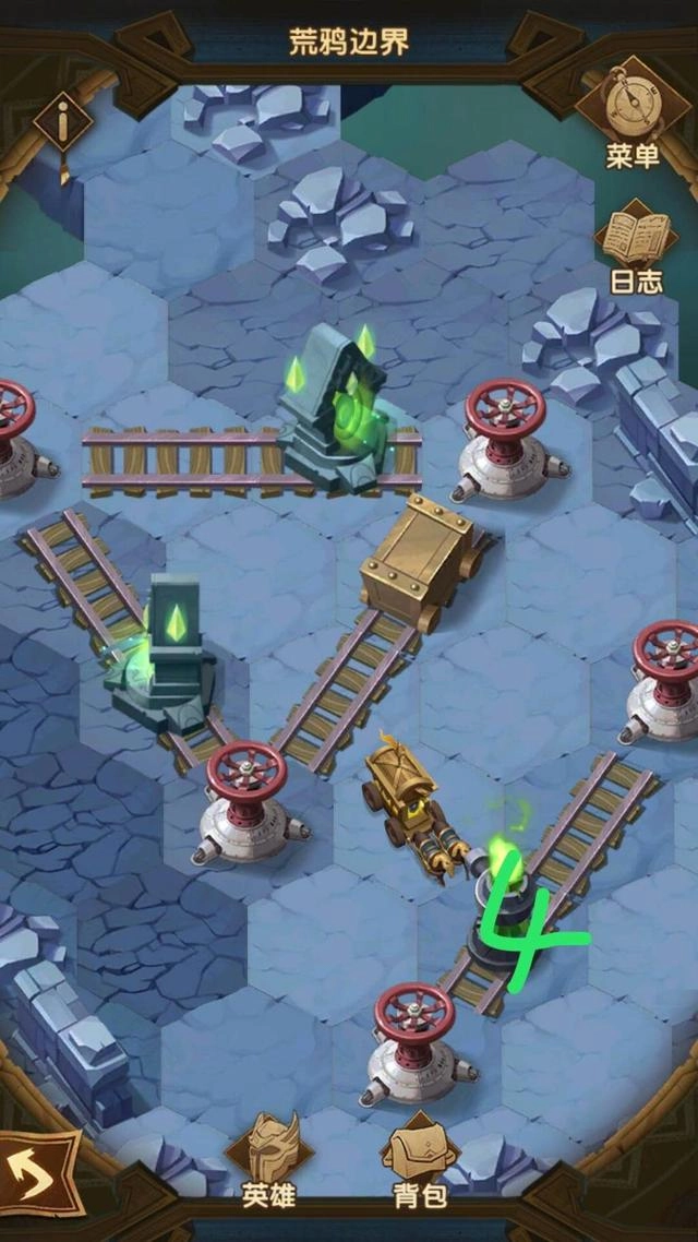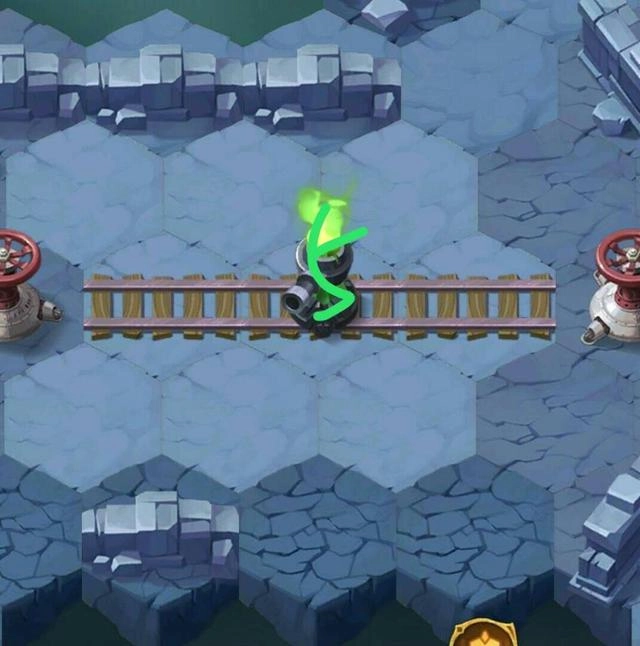 所有地图都像图里这样,设计得挺简单的。挡路的火药桶总共就三个,先把2号炮台周围的障碍物适当移动一下,这里有个消防栓能控制两条轨道,之后直接点击一号炮台开火,2号炮台就会被点燃。