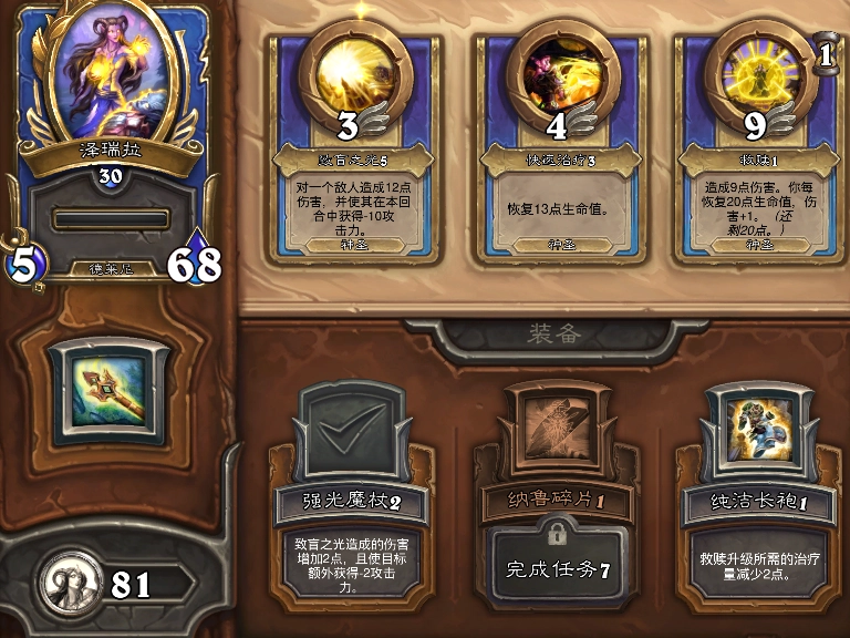 泽瑞拉装备选择强光魔杖,技能主升级致盲之光。