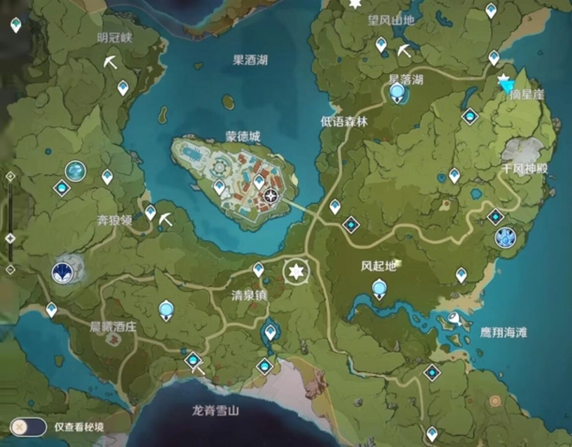 其次,开启地灵龛需要先获得对应的地灵龛钥匙,每个地灵龛内都藏有一个【华丽的宝箱】,打开后可获取原石与经验书等奖励。目前游戏中的地灵龛总数为27个,其中蒙德城分布着10个,璃月地区同样有10个,稻妻地区则有7个。