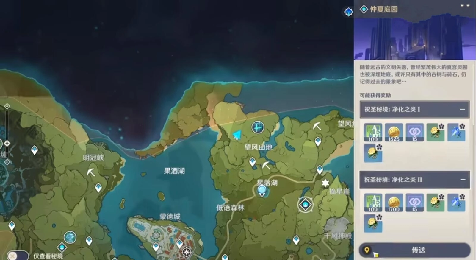 第二个在七天神像-风隔壁的一个秘境,仲夏庭院,传送过去以后往地图的右上方走
