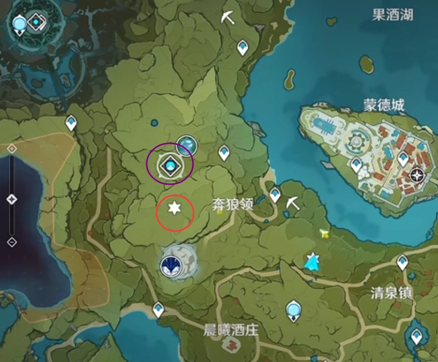 第八个在奔狼领旁边的位置,我们需要传送到秘境塞西莉亚苗圃