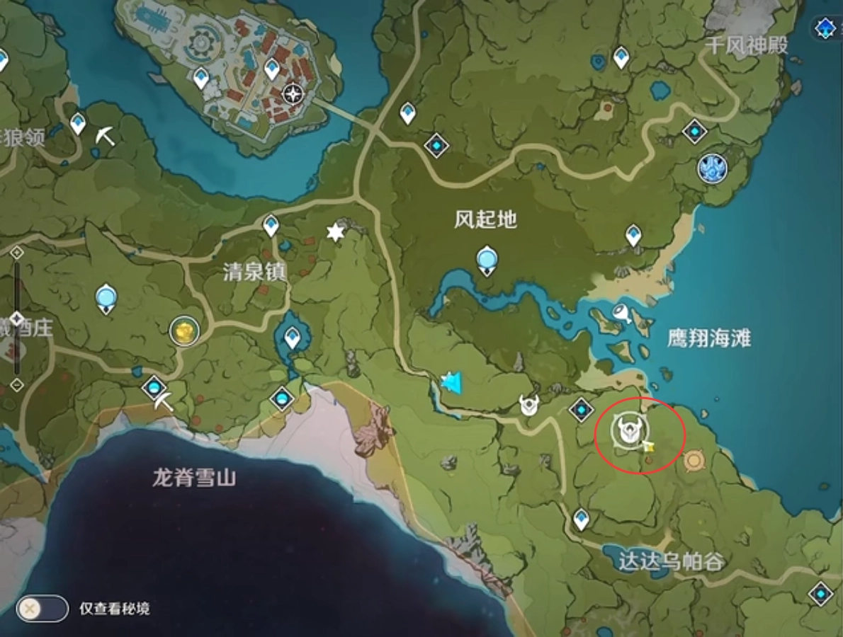 第二个位置在秘境无妄引咎密室左边的山上,如果秘境还没解锁,也可以先传送到碧水原再前往那里。