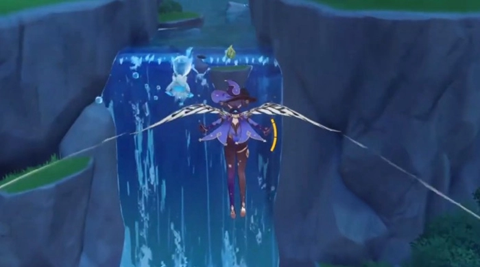 拿到这两个逐月符后,我们先前往蒙德坠星山谷的传送锚点。接着一直往南走,不远处会看到一个瀑布,第三个逐月符就在瀑布顶端,直接滑翔过去就能拿到。另外,瀑布下方还有一个,跳下去就能获取。第五个则在北面不远的地方,位于一棵歪脖子树上方的平台上,很容易找到。