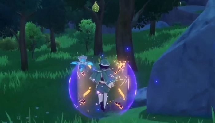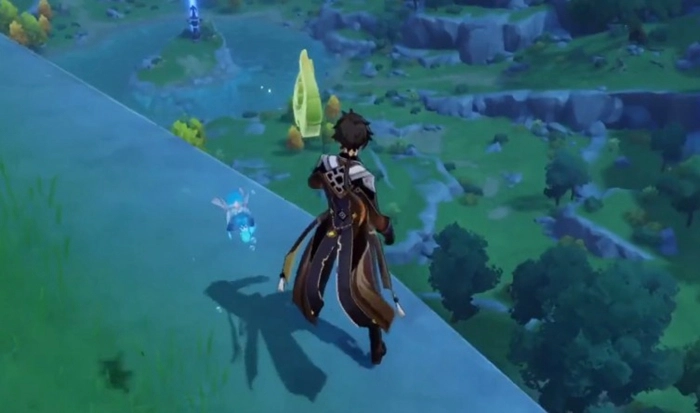 首先我们传送到仲夏庭园的传送锚点,到达后往西走,在一处山坡顶的附近能看到悬停在空中的逐月符,直接跳下去就能在半空中收集到。这里分享一个小技巧:当附近有逐月符时,小地图会显示对应的图标,找起来会比较方便。接着往北走,在一棵树旁就能找到第二个逐月符。