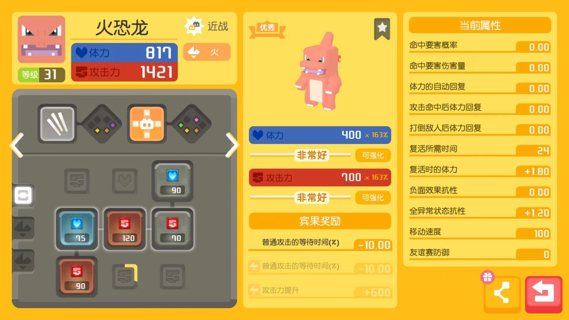 1这套阵容安排1只神兽负责近距离作战,另外2只神兽承担远距离攻击任务,属于典型的冲锋型战斗配置。神兽的选择范围可以锁定快龙、大岩蛇和椰蛋树。需要让站在前排的神兽具备较高的生命值,这样才能为后排的神兽争取到更充足的输出时间。而快龙凭借自身血量高、复活速度快的优势,成为了前排神兽的首选。