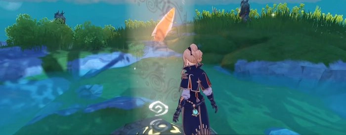 我们是从遗迹过来的,遗迹里的机关解谜都已经全部完成了,所以现在只剩下高处的谜题还没。大家按照任务指示前往指定位置,就能看到如上图所示的场景,接下来需要根据提示启动这个雕像来解谜。