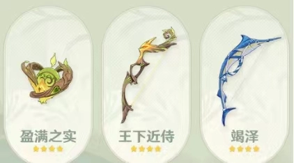 新角色登场,配套的新武器与圣遗物自然不会缺席。3.0版本共推出了7件新武器与2套全新圣遗物。新武器涵盖1把5星武器与6把4星武器:5星的猎人之径是专属武器,4星武器则包括贯月矢、森林王器、原木刀、盈满之实、王下近侍,以及作为活动武器的弓箭竭泽。