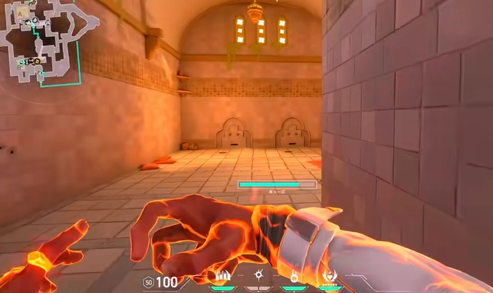 火热手感E:这是个远程伤害技能,释放时可通过鼠标左右键切换不同释放方式——一种是快速抛出,另一种是缓慢抛出,两者的投掷距离有所区别;技能落地后会在目标区域形成范围性火焰,身处火焰范围内的敌人将持续受到火焰伤害。