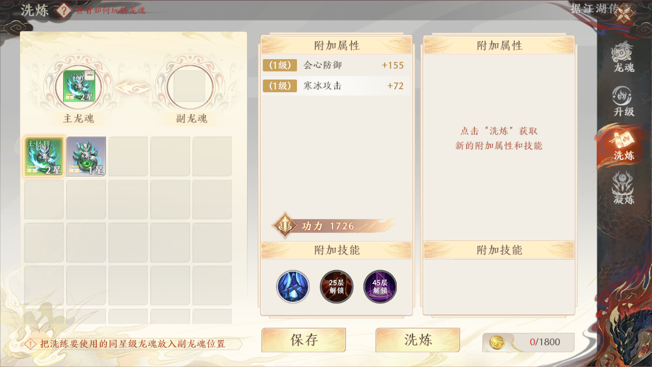 就像上图呈现的状况,合成出更高级的龙魂后,血量反而出现了下降。不过,一旦遇到这种情况,也能借助洗练来进行弥补,洗练之后,属性有可能提升到更高的水平,也不排除会变得更低。