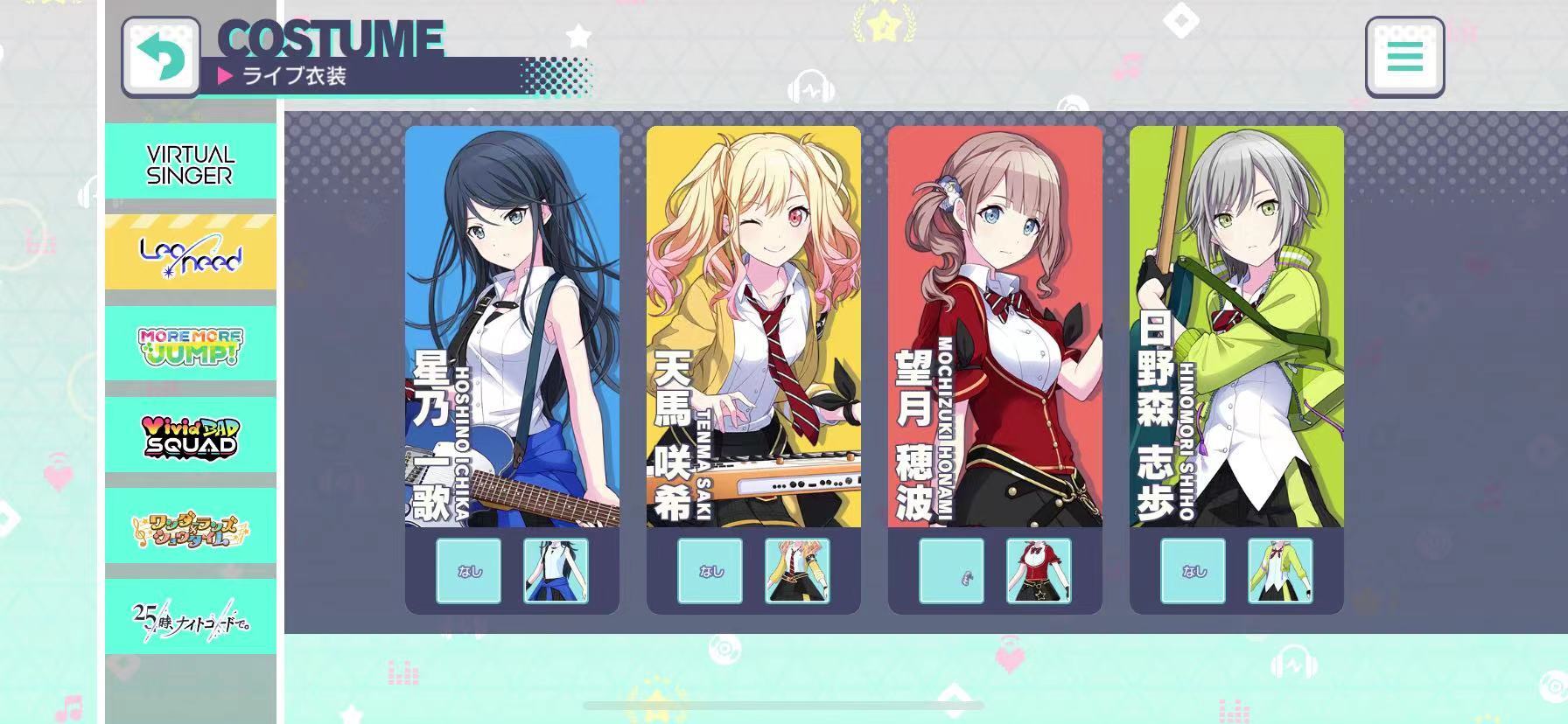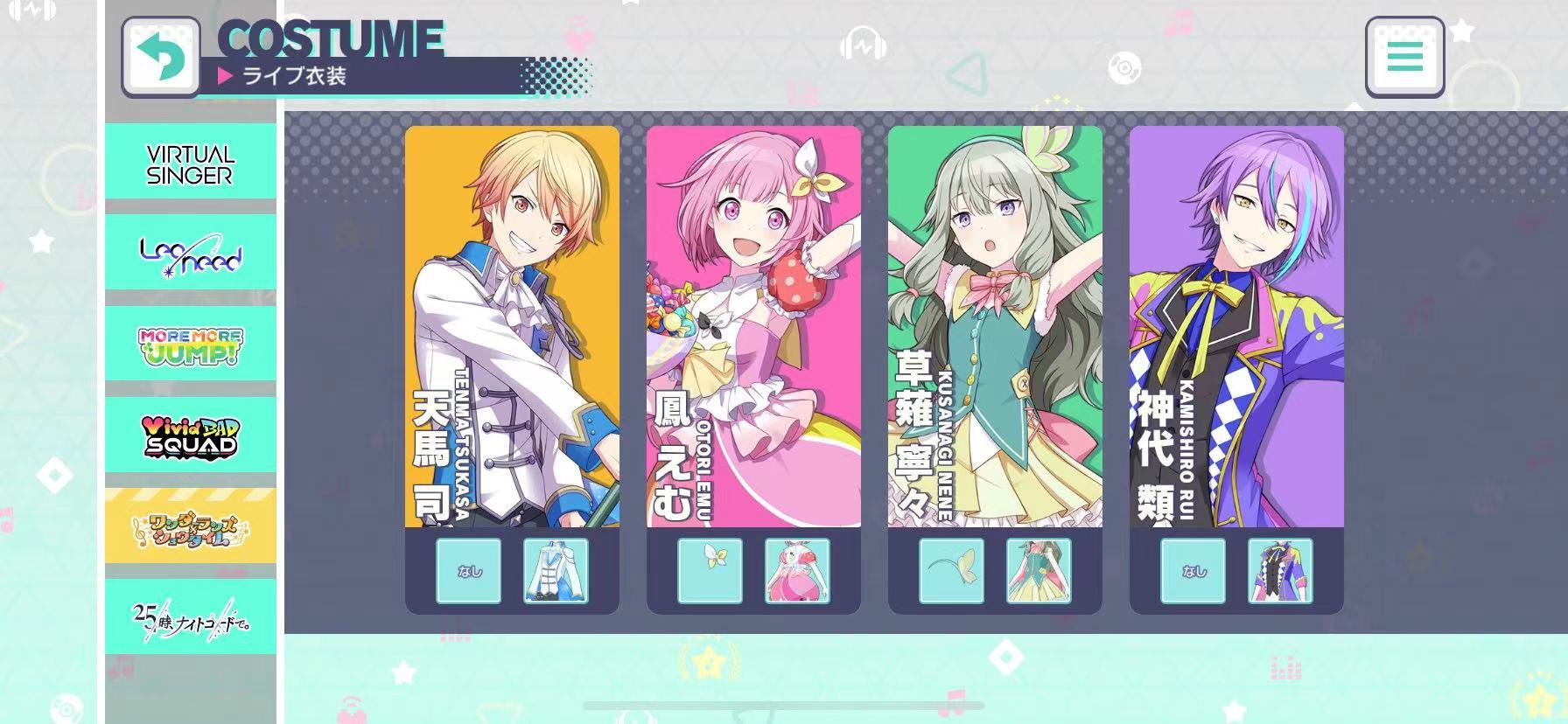 第四类是充满活力的小队,包含四位偶像,他们分别是小豆尺、白石·杏、东云·彰人以及青柳·冬弥。