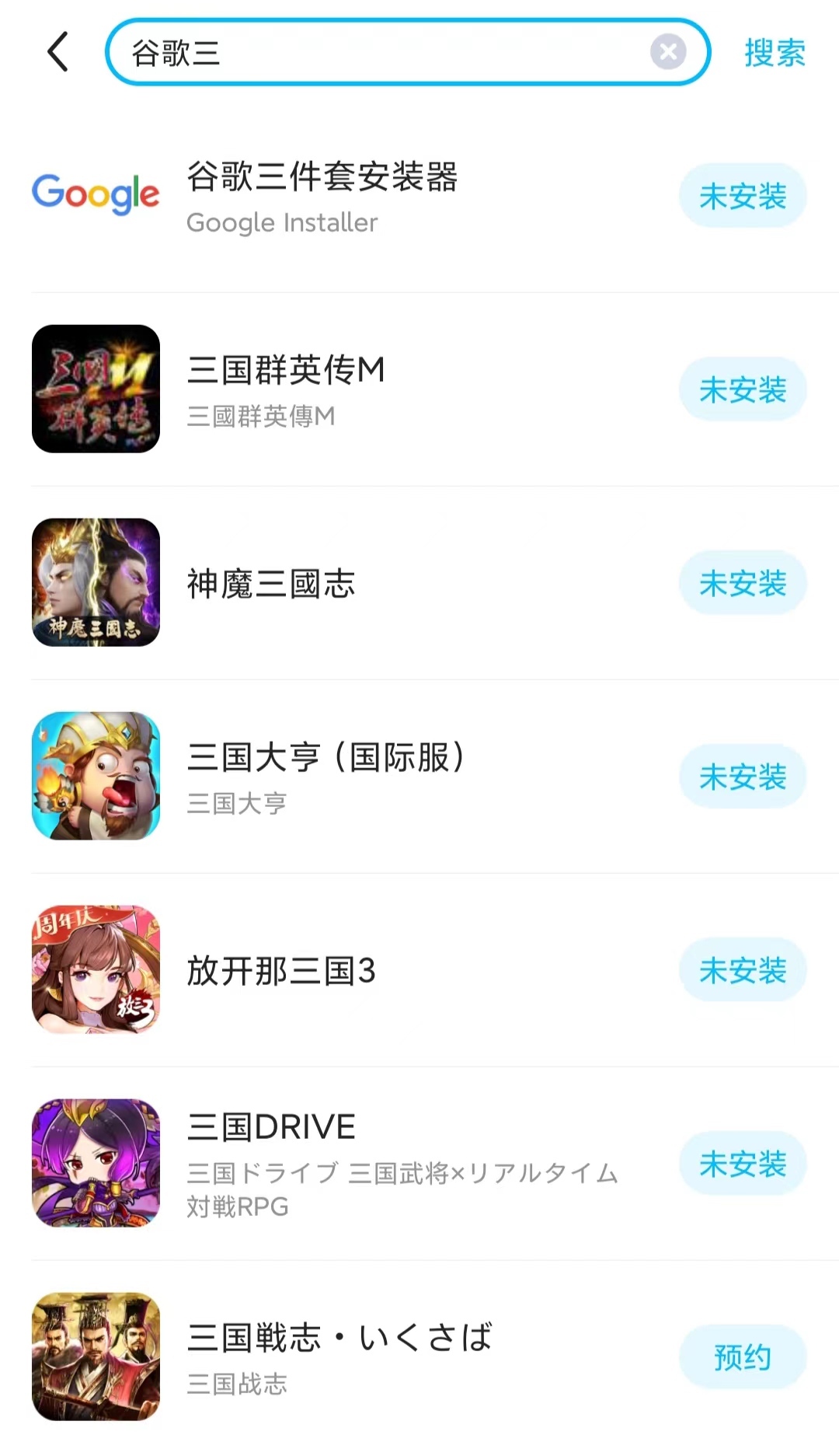 因为这款游戏暂时还没有推出国服版本,所以玩家得先下载谷歌三件套才行。搜索和下载的操作能同步进行,具体的步骤可以参考下面的图示。