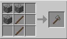 接下来要介绍的是铁斧。制作铁斧需要用到三个铁锭和两根木棍。铁锭是通过对铁矿石进行冶炼而获得的。相比石斧,铁斧的耐用性更强,砍伐的速度也更快,不管是用来清理树木,还是挖掘一些质地较软的方块,都能够轻松完成。