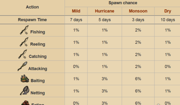 虎鲨可以在任何季节出现,它的生成由玩家在海上的某些行为触发。生成后,虎鲨通常不会主动攻击玩家,除非玩家靠近它的巢穴,因此很多时候你可能根本遇不到它。