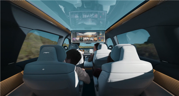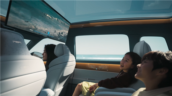 后排车顶也会配备“大彩电”,但它的比例不太像16:10,反而更显狭长,和领克900的设计方案相近。