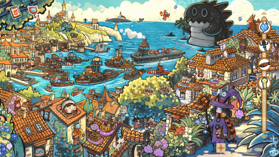 采用动态厚涂手绘技法,画面色彩浓郁、光影细腻,呈现樱花纷飞的猫镇、齿轮运转的钟楼等鲜明场景。角色与环境运用逐帧动画,星河流转、巨鲸跃升等效果宛如可互动的艺术画卷。结合季节更迭的环境音效与生态化动态互动(如摇动樱花树落下物品、拨动齿轮改变机关),构建沉浸式绘本世界。游戏还融合手绘童话氛围与蒸汽朋克元素,注入真实温度与人性共鸣。