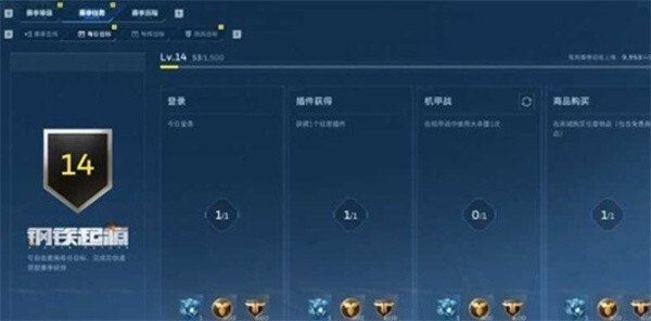当角色等级提升至14级时,可开启【赛季任务】界面,进而完成登录、参与对局等基础任务。