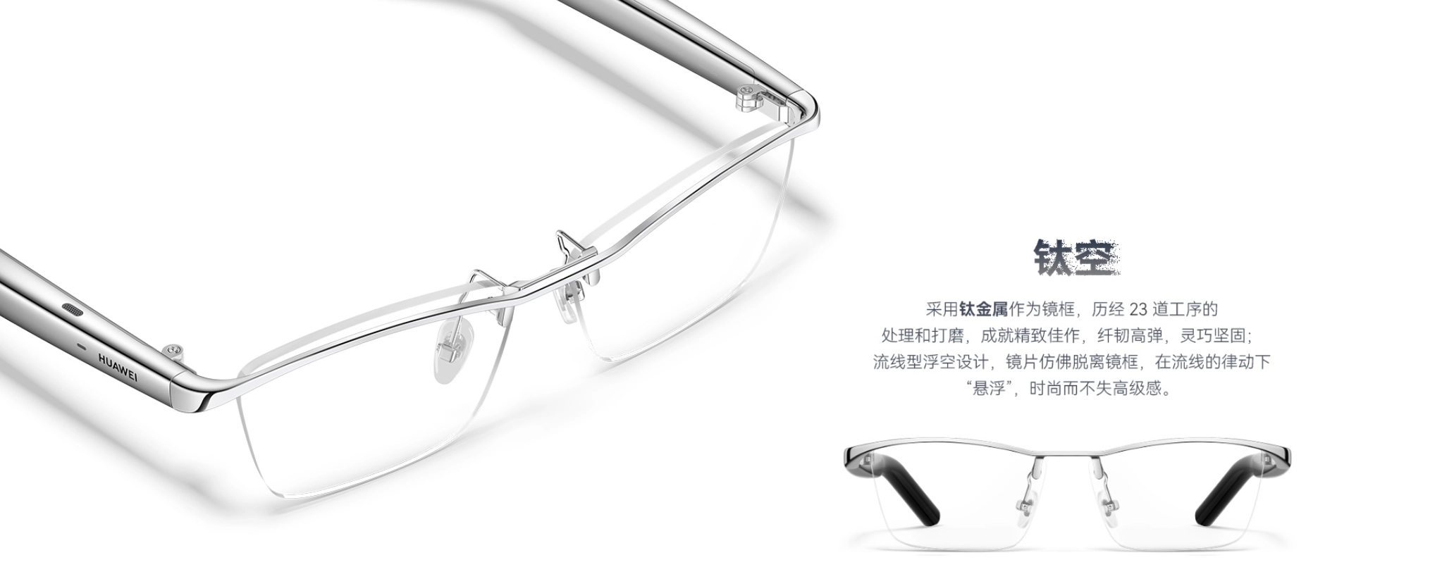 小雷在华为官网上还了解到,前代智能眼镜就对镜腿的弧度和材质进行了优化,二代则采用钛合金铰链来减轻夹持感。此次的轻量化升级,应该同样能实现久戴不闷、不压鼻的效果,连理想都开始涉足车载轻量眼镜领域了,华为自然不会在体验上掉链子。