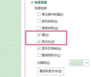 最后在右侧勾选“值”与“百分比”这两个选项。