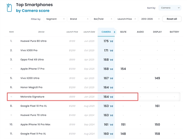 这个成绩超过了华为Pura 70 Ultra的163分、小米15 Ultra的159分等超大杯机型,而且它还是榜单前列最轻薄的机型。