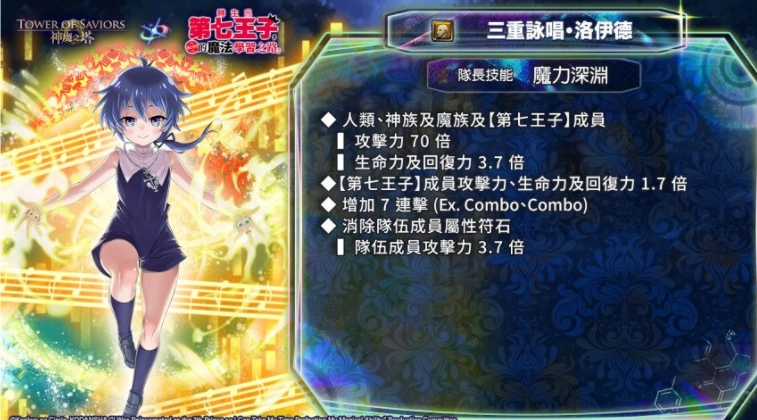 「第七王子‧洛伊德」将于10月15日(星期三)开启潜能解放,木属性的该角色能够依靠「人之魂宠」的力量,完成潜能解放并转变为光属性的「三重咏唱‧洛伊德」。