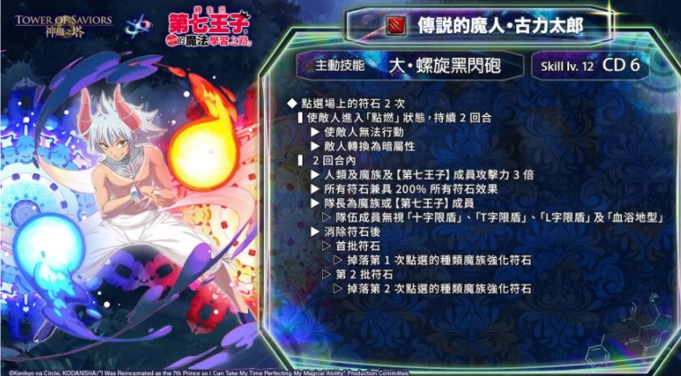 被洛伊德深不可测的魔力与魔法彻底压倒并屈服,化身为可爱小型魔宠的「魔宠‧古力莫」将于10月15日(三)开启潜能解放。届时,「魔宠‧古力莫」将借助「魔之魂宠」的力量,通过潜能解放化为人形模样的「传说的魔人‧古力太郎」。