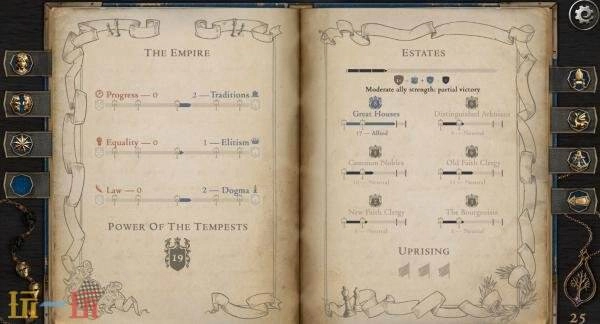 作为未来执掌权柄之人,你务必洞悉帝国当下的境况。各地的地主为一己私利纷争不断,致使国库渐渐亏空。教会虽已衰落,却在民众心底埋下了仇恨的根苗。贵族群体一心想要维系旧有的传统秩序,而平民阶层则迫切要求得到与贵族平等的权利。你要留意这些态势,在追寻自身目标的过程中,为国家的走向做出抉择。