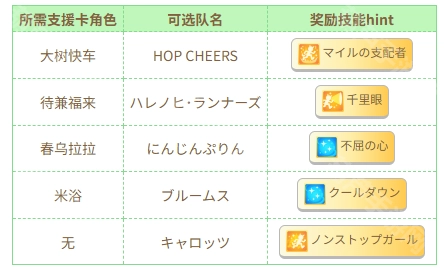 队名会对通关时奖励的传说技能提示产生影响(通关条件是赢得青春杯决赛),奖励事件会在育成结束后出现(位置在上右)